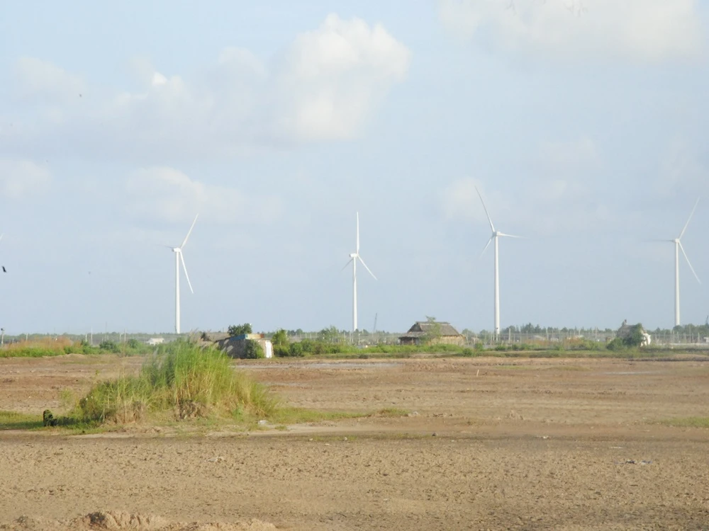 Một góc cánh đồng điện gió Bạc Liêu nhìn từ xa. Ảnh: Trần Vũ