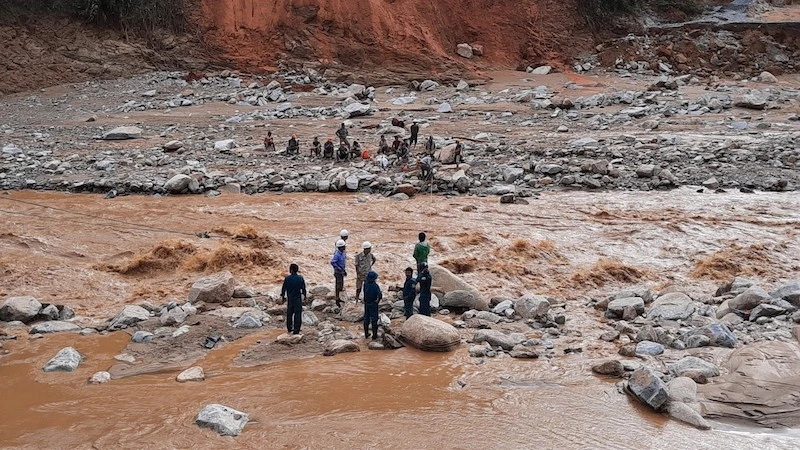 Như PLO thông tin, sau bão số 9, khoảng 200 công nhân làm việc tại Công trình Thuỷ điện Đăk Mi 2 đã bị cô lập. Nhận thông tin, các đơn vị đã phối hợp bắt ròng rọc tiếp tế lương thực, thực phẩm vào bên trong.
