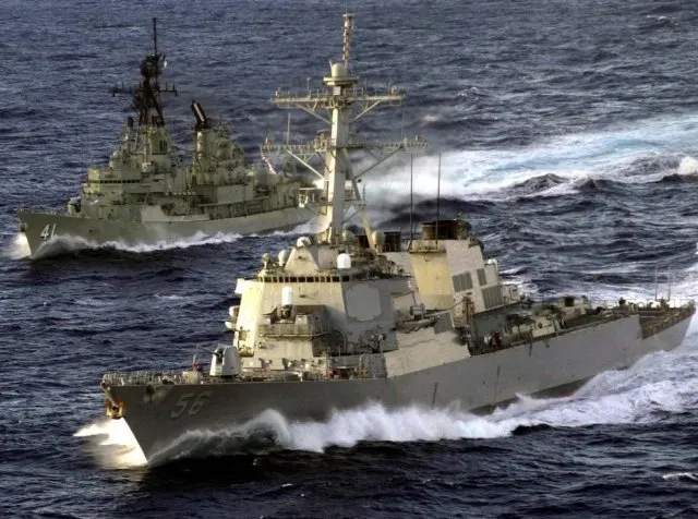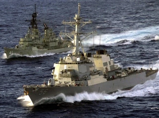 Tàu khu trục USS John S. McCain của Mỹ (phải) đã gặp nạn tại eo biển Malacca, 10 thủy thủ hiện đang mất tích.
