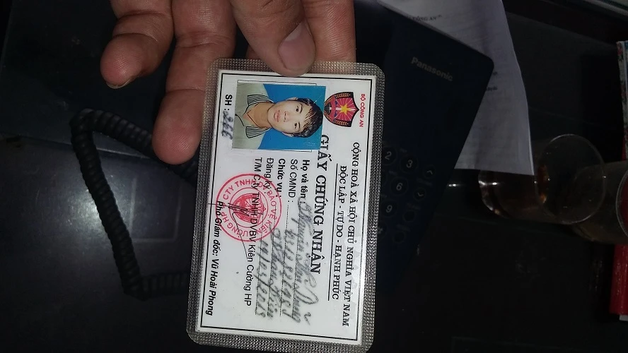 Xem mặt trong của thẻ Công an, anh Lăng thấy thông tin của thanh niên là Nguyễn Văn Dũng, nhân viên Công ty TNHH DV Kiên Cường Hải Phòng. Ngay lập tức, anh Lăng đã yêu cầu đối tượng về Công an phường Đằng Lâm để giải quyết.