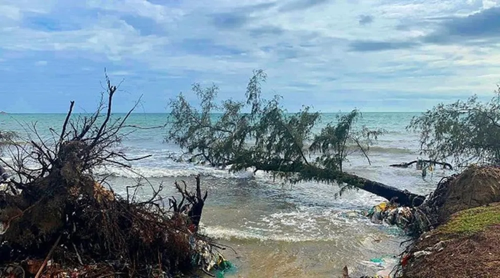 Bãi biển ở Tuy Phong, Bình Thuận bị xâm thực do sóng lớn.