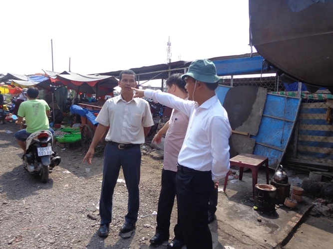 Và ngay sau cuộc tiếp xúc, ông Bùi Xuân Cường cùng các cán bộ Sở GTVT xuống thị sát thực địa đường Cần Giuộc nằm bên hông chợ Xóm Củi.