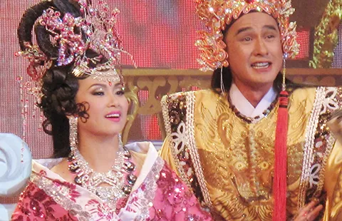 Ca sĩ Hà Phương và diễn viên điện ảnh - kịch nói Lương Thế Thành được khen ngợi trong một trích đoạn cải lương hồ quảng.