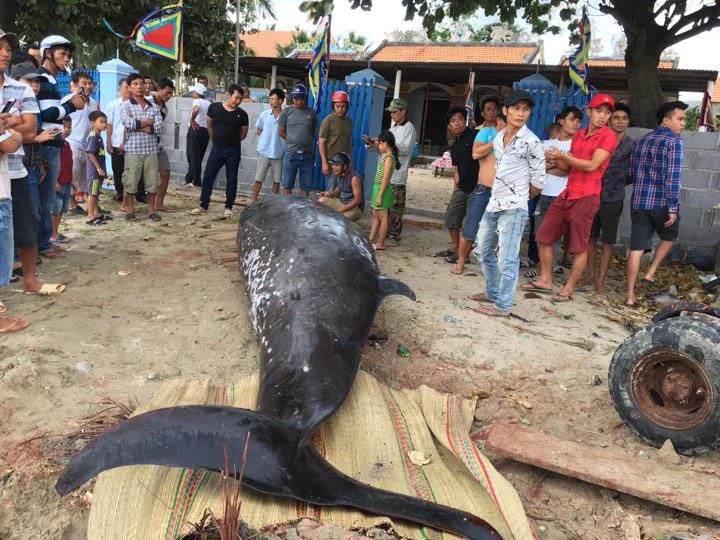 Theo ông Trần Thanh Tòng, Phó Chủ tịch UBND xã Vạn Hưng, xác con cá voi trên trôi dạt vào bờ biển địa phương này tối 31-7. Người dân cho rằng đây là cá ông lụy bờ nên tổ chức trục vớt, đưa vào bờ. Trên thân cá có nhiều vết thương, còn chảy máu. Do cá quá nặng, người dân phải thuê xe cẩu đưa xác cá đến lăng thờ cá ông để làm nghi lễ cải táng theo phong tục vùng biển.