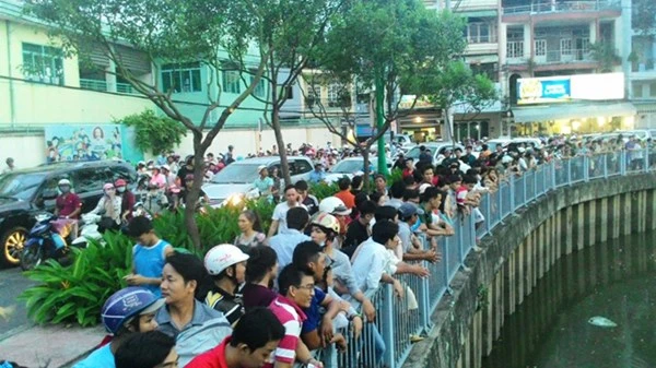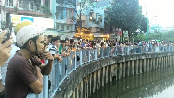 Xác chết là nam giới, trôi từ từ vào phía bờ Hoàng Sa (đoạn qua cầu số 5, đường Hoàng Sa, phường 14, quận Phú Nhuận). Ảnh Việt Văn.