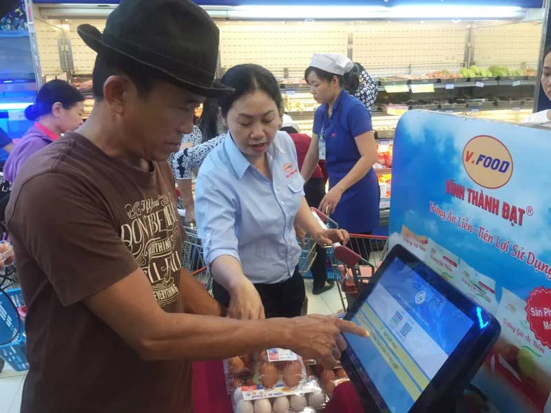 Người tiêu dùng đang tìm hiểu thông tin về nguồn gốc trứng gà, vịt. Ảnh: TÚ UYÊN