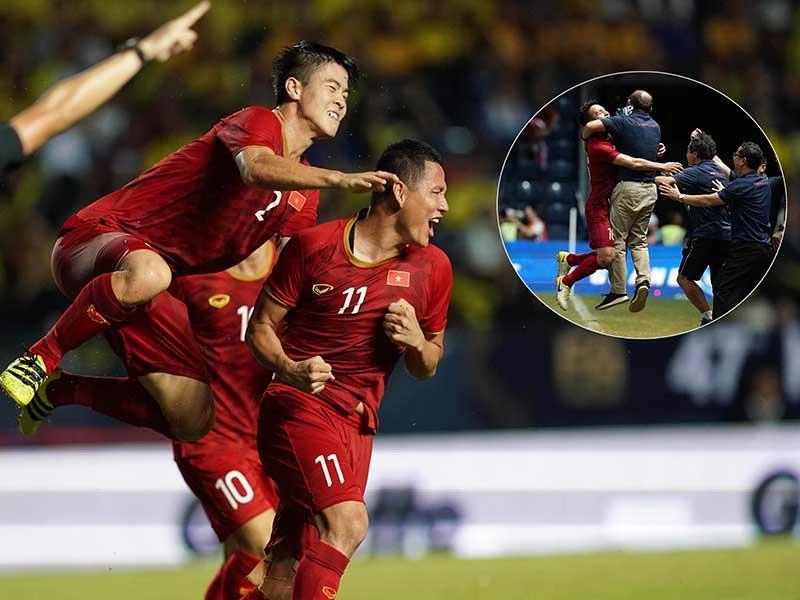 Thầy trò HLV Park Hang-seo mừng chiến thắng trước chủ nhà Thái Lan tại King’s Cup. Ảnh: PHƯƠNG ANH