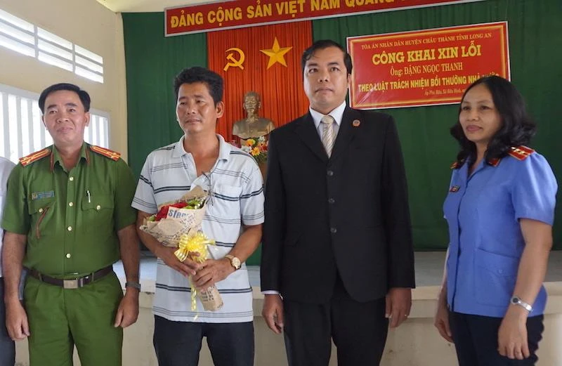 Cơ quan tố tụng huyện Châu Thành tỉnh Long An xin lỗi anh Đặng Ngọc Thanh vào năm 2017. Ảnh: NGÂN NGA