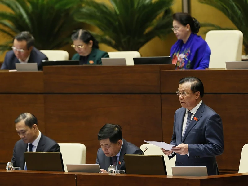Bộ trưởng Tài chính Đinh Tiến Dũng giải trình thêm sau khi đại biểu thảo luận về dự thảo Nghị quyết miễn thuế sử dụng đất nông nghiệp. Ảnh: quochoi.vn