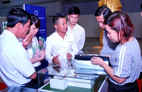 Khách hàng đang tìm hiểu thông tin căn hộ tại một sàn giao dịch bất động sản ở TP.HCM. Ảnh: HTD