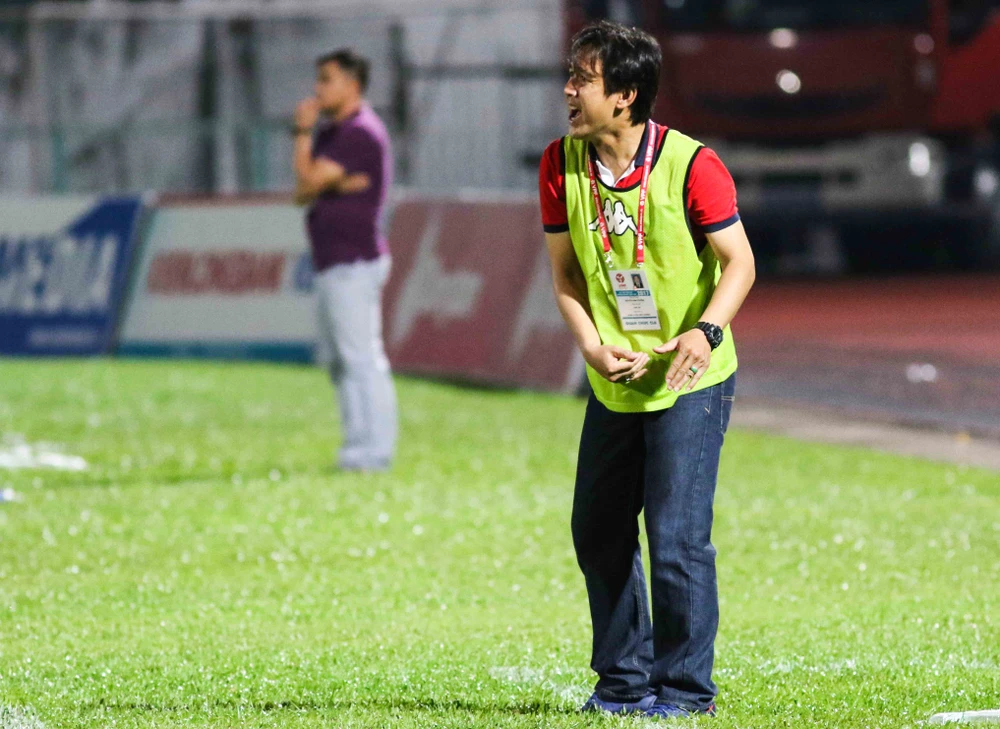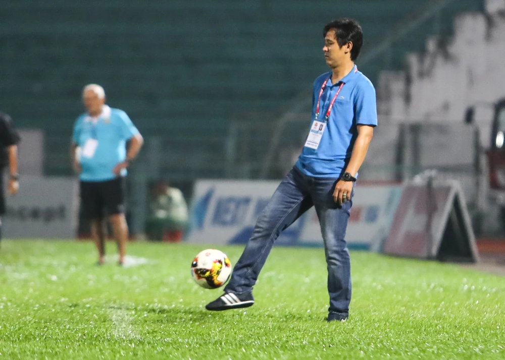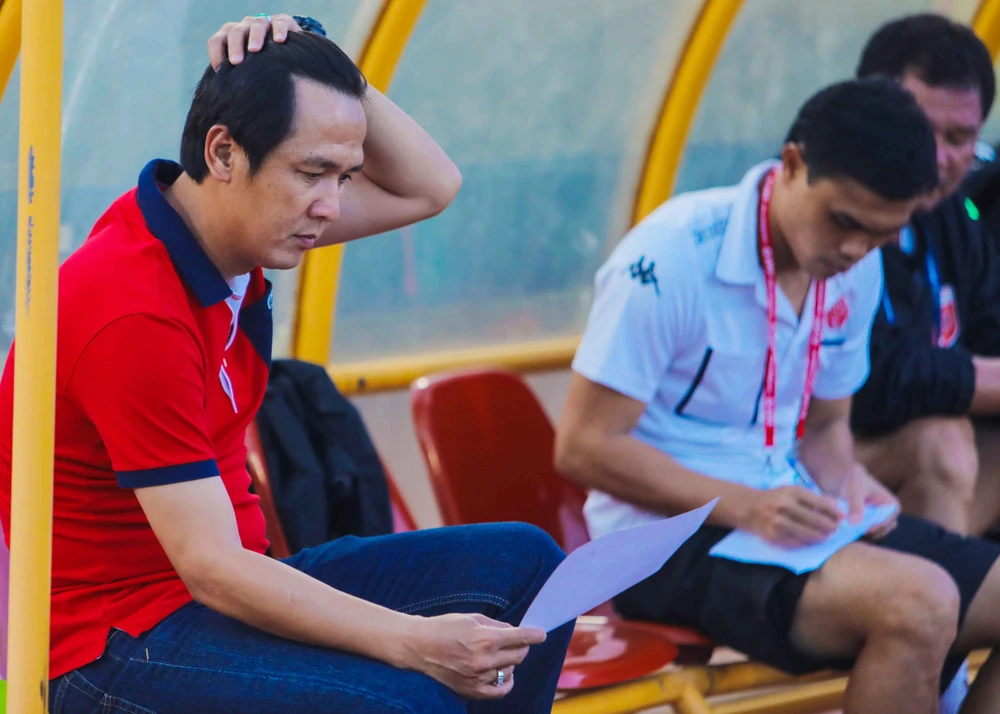 Đằng sau HLV Minh Phương là đàn anh bên kia chiến tuyến, HLV Nguyễn Đức Thắng của Sài Gòn FC.