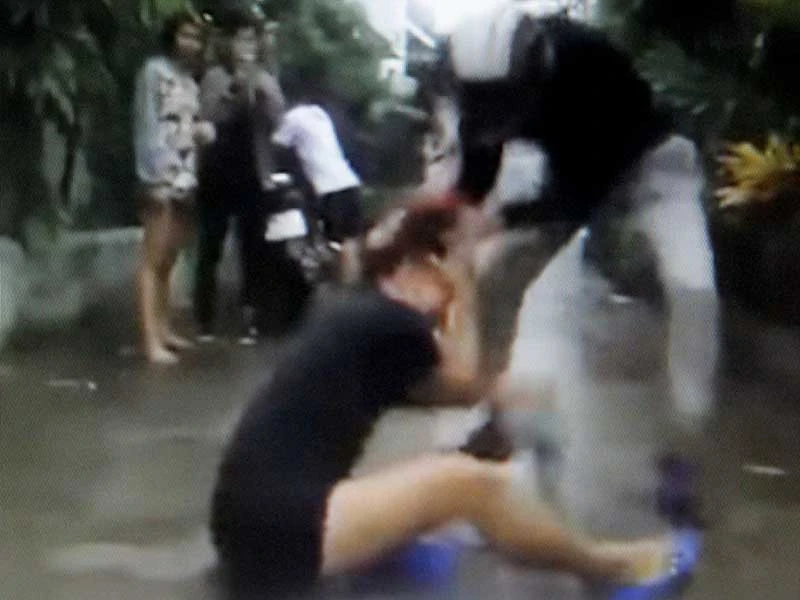 Nhóm của Nhí Tinô không những đánh mà còn buộc một nữ sinh phải liếm chân. (Ảnh cắt từ clip)