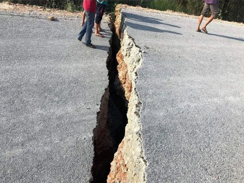 Vết nứt lớn bất ngờ xuất hiện tại đường đang thi công. Ảnh: CTV