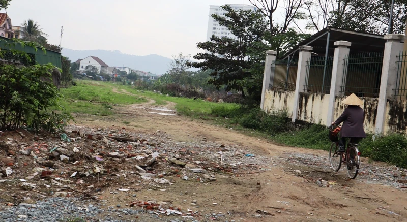 Dưới nền đường Huỳnh Thúc Kháng này là lượng đất rác thải lớn chưa được bốc lên đưa đi xử lý.