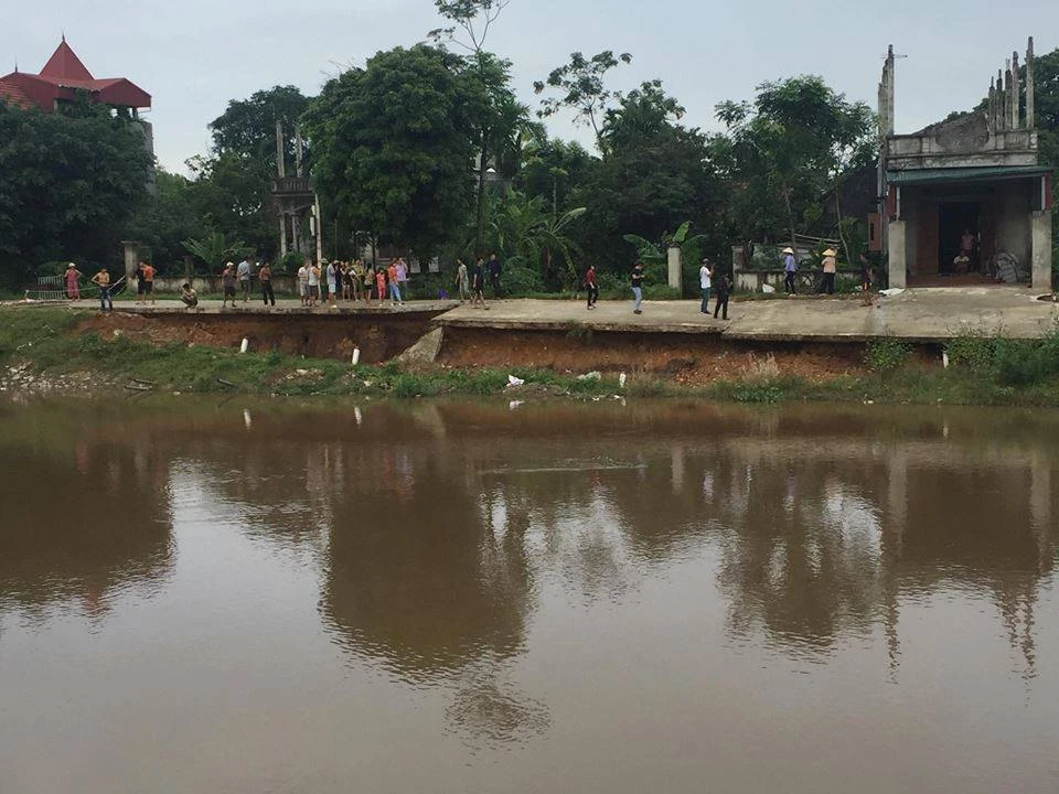 Ghi nhận thực tế, đoạn đường bị sụt lún với chiều dài khoảng 90m. Phần đáy đường phía dưới chân đê sông Lương đã bị sạt lở hết đất, móng của con đường gần như không còn.