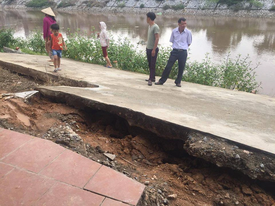 Ông Đỗ Văn Viết, một người dân thôn Hòa Khê, cho hay con đường được thi công từ tháng 3-2017. Rạng sáng 3-10, người dân trong thôn nghe tiếng ồn bên ngoài mép sông, chạy ra kiểm tra thì phát hiện con đường bị rạn nứt, vỡ toác. Sau đó, mặt đường cứ vỡ dần.