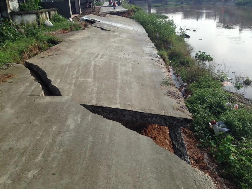 Thậm chí có những đoạn bê tông đường bị gãy đứt ngang người dân không thể nào di chuyển được khiến ít nhất 6 hộ gia đình ở gần đường bê tông bị ảnh hưởng.