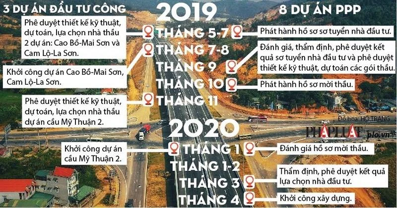 Dự án đường bộ cao tốc Bắc-Nam được chia làm 11 dự án thành phần, gồm ba dự án đầu tư công và tám dự án đầu tư theo hình thức PPP, tổng mức đầu tư lên đến 102.513 tỉ đồng.
