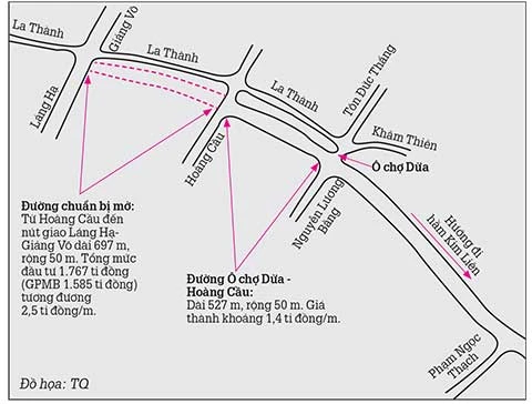 Dài gần 700 m, tổng mức đầu tư 1.767 tỉ đồng - đó là hai con số được dư luận quan tâm nhất về dự án đường nối từ Hoàng Cầu đến nút giao Láng Hạ - Giảng Võ, Hà Nội (đoạn 3 của dự án đường Vành đai I). Đây là đoạn đường có suất đầu tư đắt nhất Việt Nam, thậm chí đắt nhất trong khu vực (hơn 2,5 tỉ đồng/m) nên được nhiều người ví von là “đường đắt nhất hành tinh”.