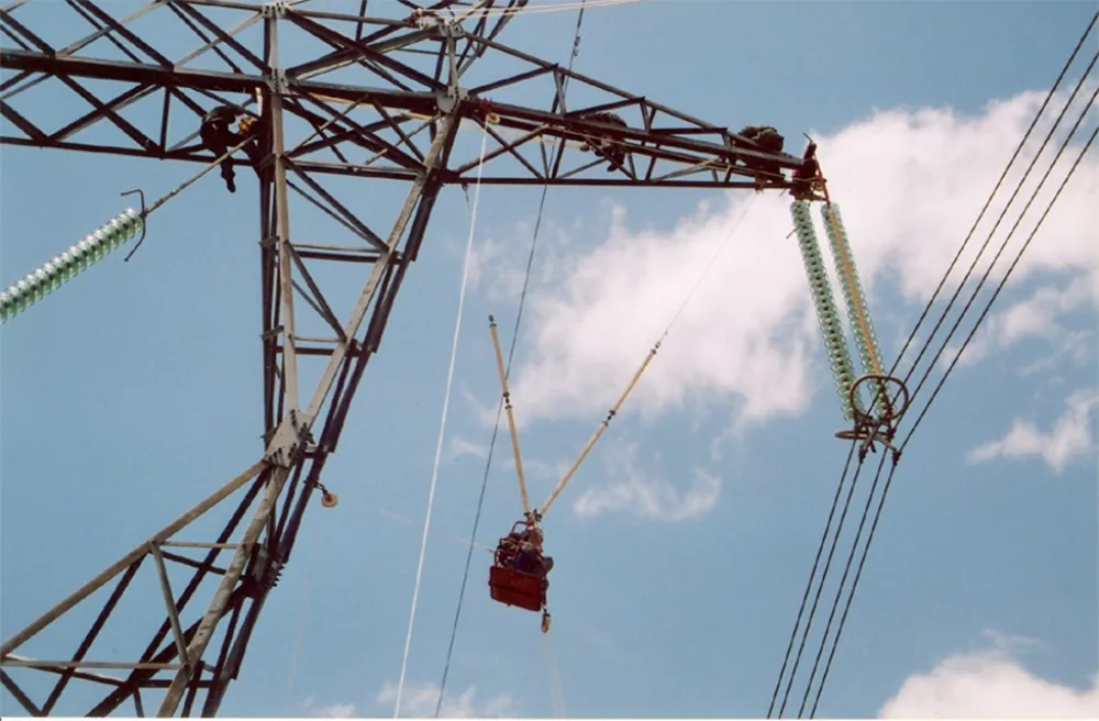 Công nhân sửa chữa đường dây 500kV Bắc – Nam đang mang dòng điện