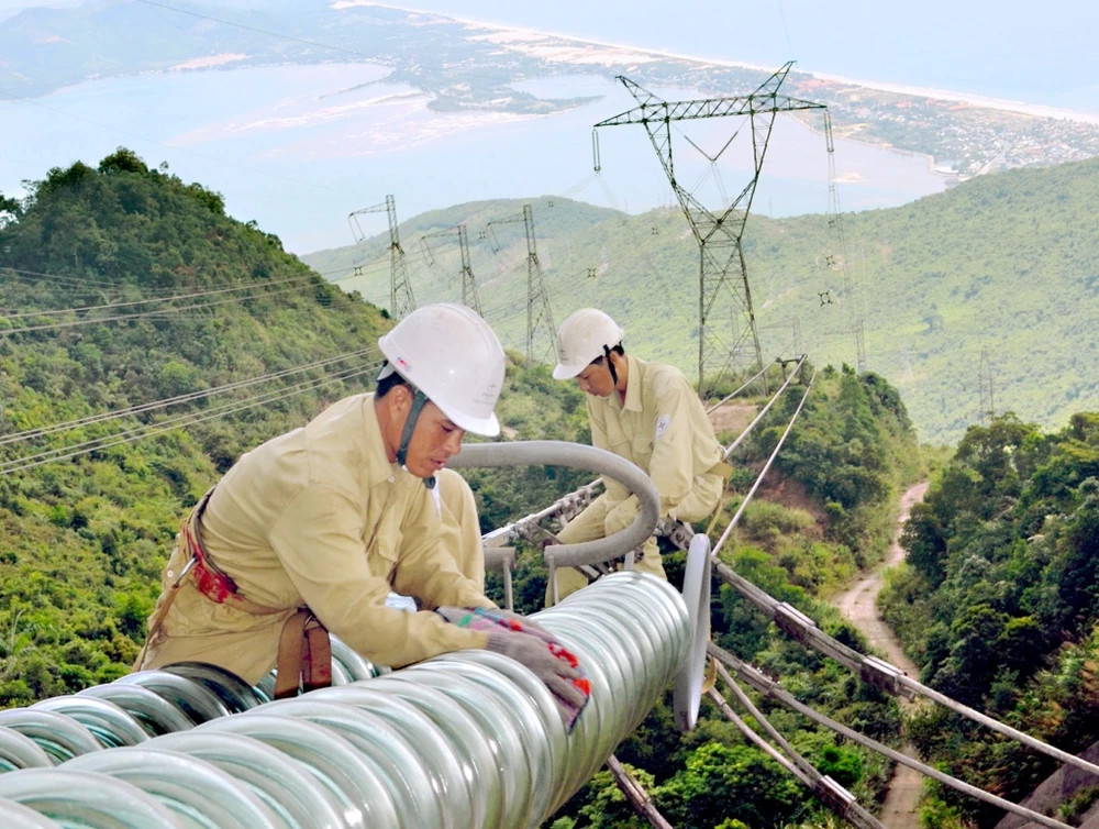 Công nhân Công ty Truyền tải điện 2 (PTC2) sửa chữa đường dây 500kV Bắc – Nam