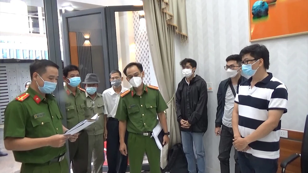 Công an đọc lệnh bắt, khám xét với những người liên quan. Ảnh: HT