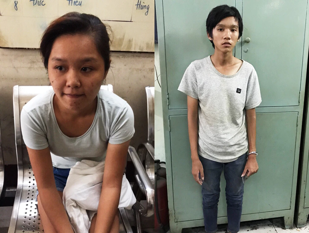 Uyên (bên trái) và Quang tại cơ quan điều tra. Ảnh: CA
