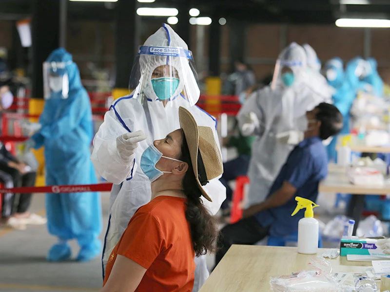 Xét nghiệm COVID-19 cho người dân phường Hiệp Bình Chánh, TP Thủ Đức, TP.HCM. Ảnh: HOÀNG GIANG
