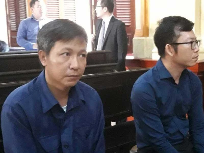 Bị cáo Nguyễn Đăng Thảo (đeo kính) và Trần Hải Đăng tại tòa. Ảnh: HY