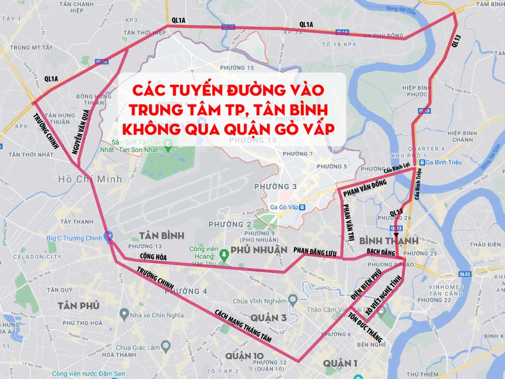 Dưới đây là sơ đồ gợi ý các tuyến đường vào trung tâm TP.HCM, quận Tân Bình mà không cần đi qua quận Gò Vấp.