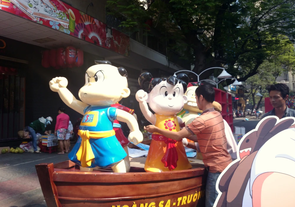 Truyện tranh Thần đồng đất Việt năm nay phát hành bộ truyện mang chủ đề Hoàng Sa – Trường Sa nên tại đường sách, các nhân vật Tí, Sửu, Dần, Mẹo đều trên thuyền bảo vệ biển đảo