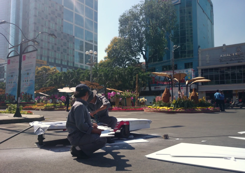 Riêng khu vực Đường hoa, tất cả hạng mục chính đã hoàn thành, trong ngày 27-1 chỉ còn phần kết nối điện, ánh sáng cho các tiểu cảnh để chuẩn bị cho lễ khai mạc vào tối 28-1.