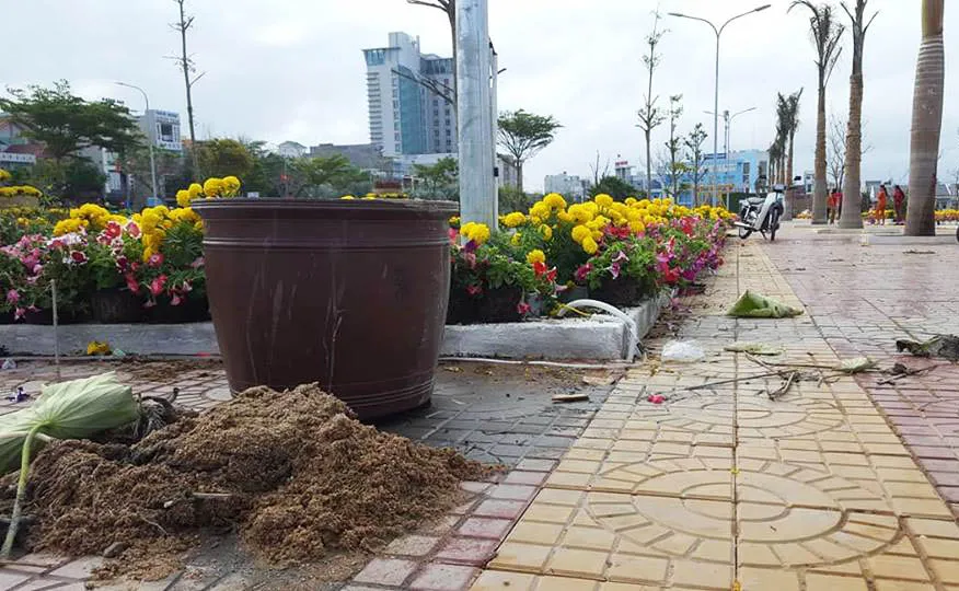 Trao đổi với Pháp Luật TP.HCM, ông Võ Ngọc Kha, Chủ tịch UBND TP Tuy Hòa (Phú Yên), cho hay sáng sớm 26-2, đường hoa của TP Tuy Hòa ở công viên trên đường Hùng Vương đã bị nhiều người thiếu ý thức vào đập phá hư hỏng nặng nề.