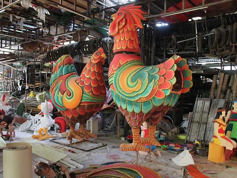 Gà trên đường hoa có thể chuyển động và gáy