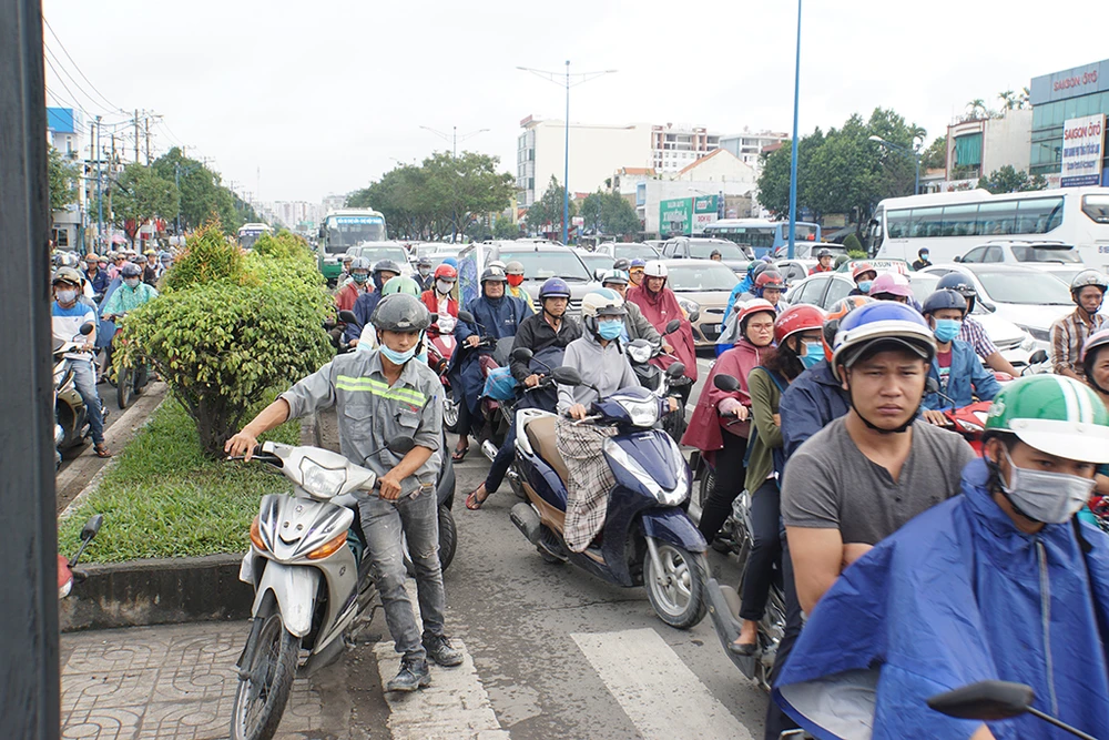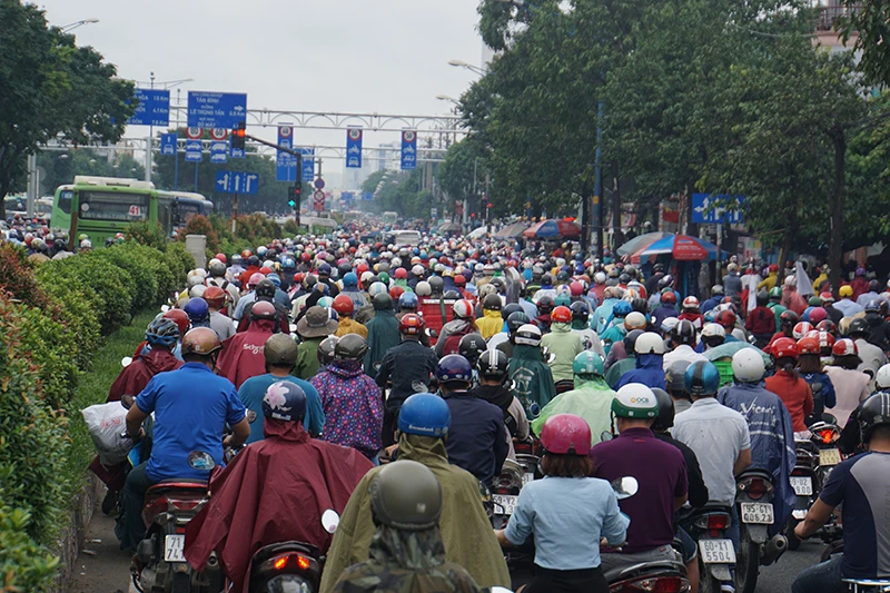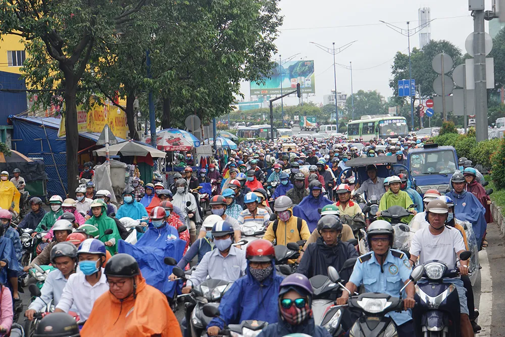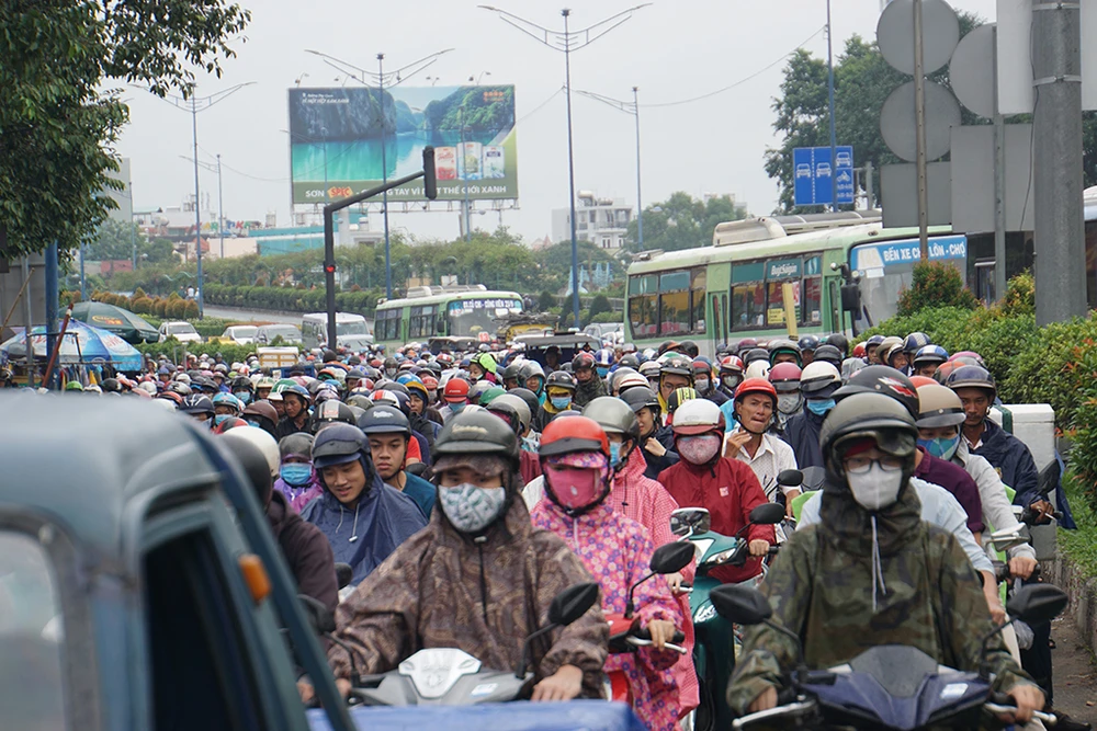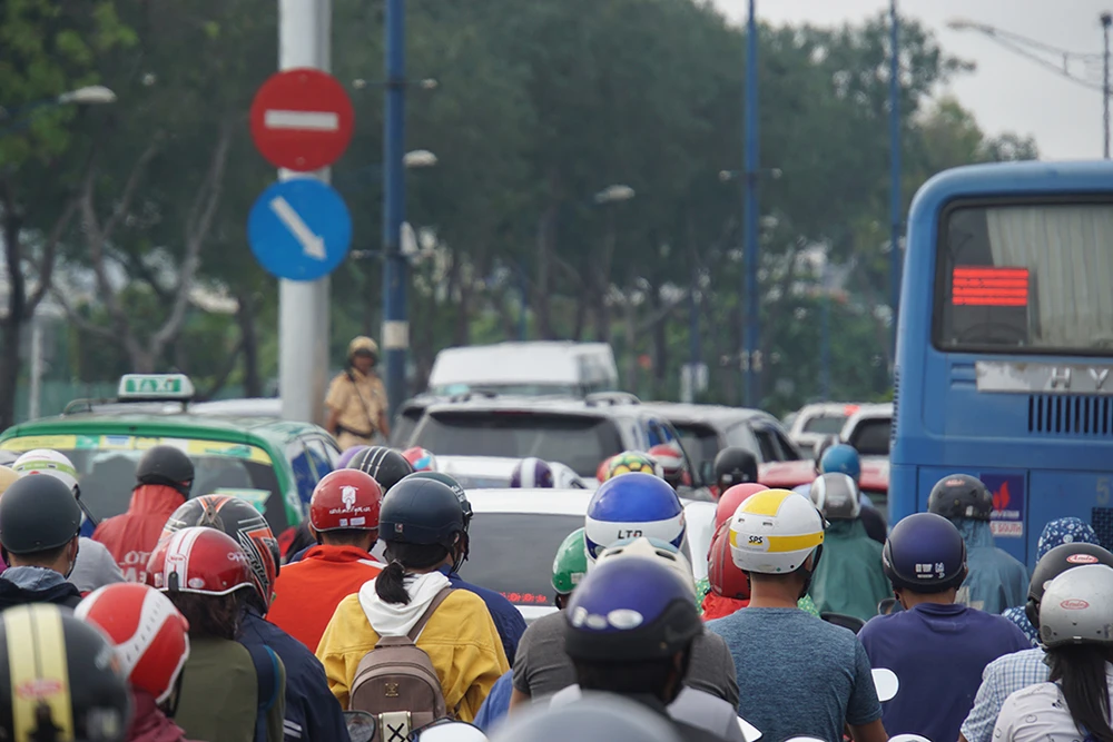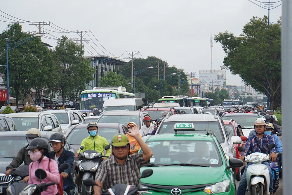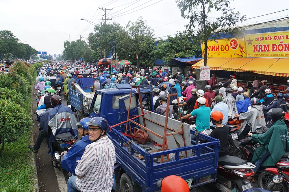 Hàng ngàn phương tiện di chuyển kiểu nhích từng chút một.