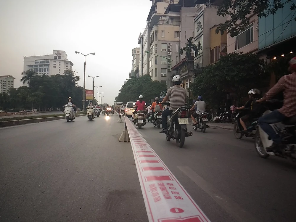 Phía đường còn lại bị chia đôi để phục vụ việc đi lại của người dân qua khu vực này. Tới đây, các phương tiện ô tô sẽ chỉ được phép di chuyển từ Cầu Giấy đi Kim Mã, chiều ngược lại sẽ phải di chuyển theo hướng khác.