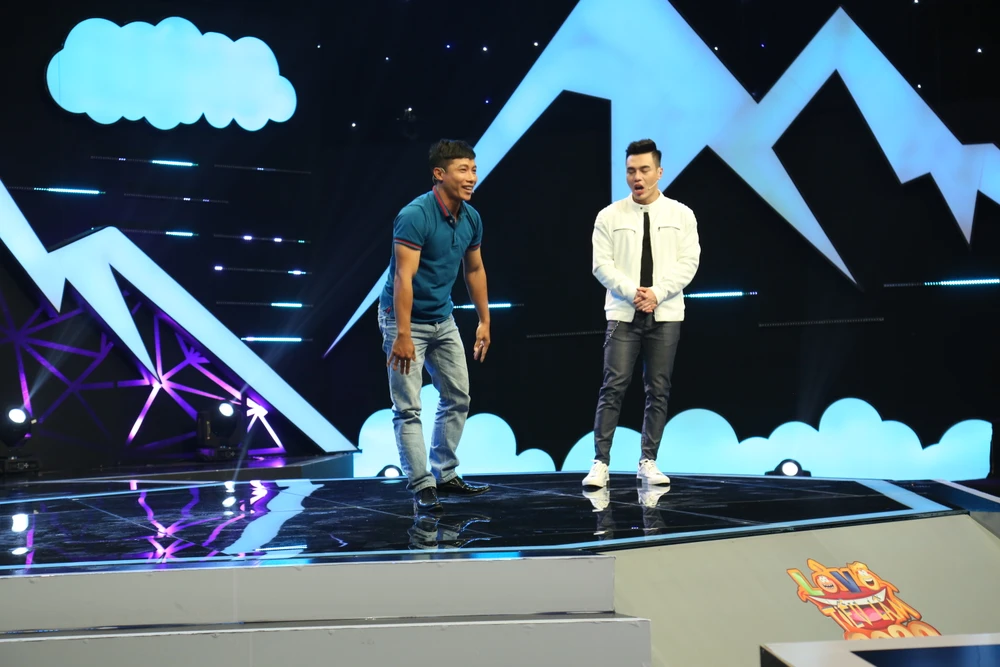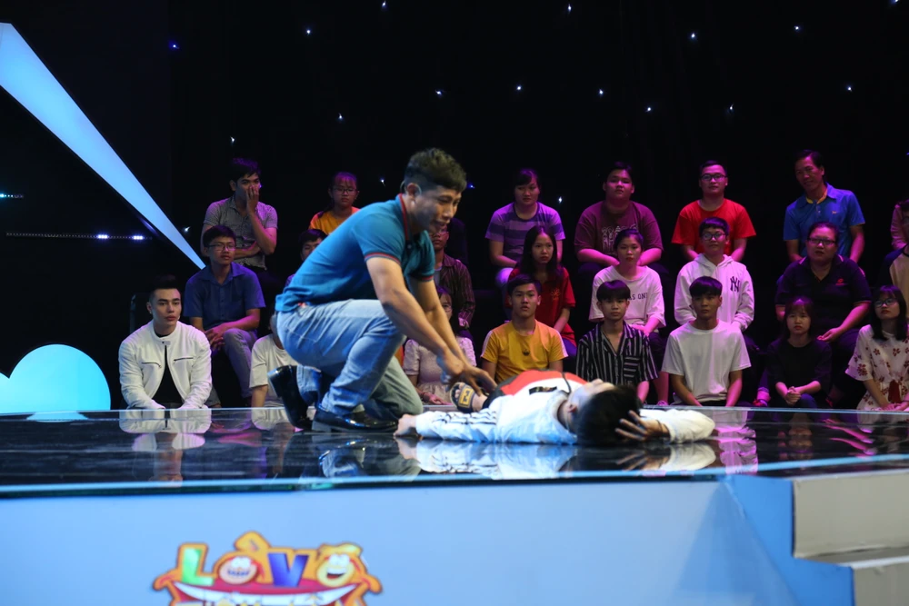 Ngay lúc này, MC Dương Lâm bèn ra tay trợ giúp, chàng MC lấy ngay cây lau nhà luôn miệng nói: “Trời ơi, lau miếng nè, miếng gì mà rớt quá chừng. Thôi giám khảo cho hai bạn thêm một cơ hội nữa đi".