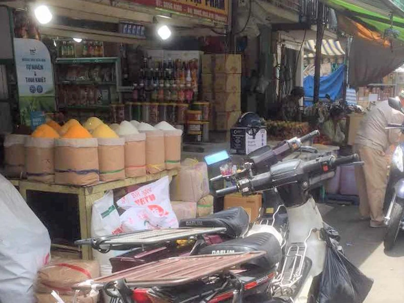 Tại khu vực chợ Bình Tây như đường Phan Văn Khỏe, Lê Tấn Kế... phóng viên ghi nhận có hơn 10 sạp hàng bán gia vị. Tại một số quầy sạp trưng bày đường cát đóng trong bao loại 50 kg và ghi rõ tên các công ty sản xuất đường trong nước. Tuy vậy, có sạp không trưng bày loại đường đóng trong bao mà chỉ bán đường đã được sang chiết vào cây 12 kg (bao xá).