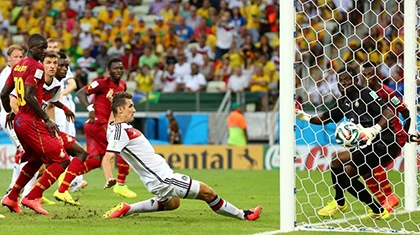 Trận thứ 2, Đức bỗng chơi mất lửa khi bị Ghana cầm hòa 2-2 trong thế bị dẫn trước. Ở trận đấu này, Klose của Đức được tung vào sân từ băng ghế dự bị đã có bàn thắng quý giá san bằng tỉ số 2-2 cho Đức. Bàn thắng thứ 15 của Klose sau 4 lần tham dự giải bóng đá hấp dẫn nhất hành tinh cũng giúp Klose san bằng kỷ lục ghi nhiều bàn thắng nhất trong lịch sử World Cup của Ronaldo (Brazil).