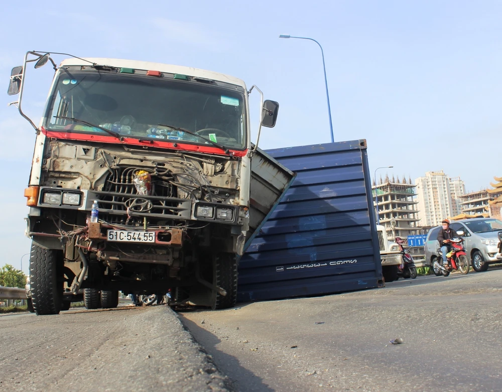 Vào thời điểm trên, tài xế Võ Văn Nam (26 tuổi) điều khiển xe đầu kéo mang BKS: 51C – 544.55 chở theo thùng container (loại 20 feet), lưu thông trên đại lộ Mai Chí Thọ hướng từ cảng Cát Lái ra xa lộ Hà Nội.