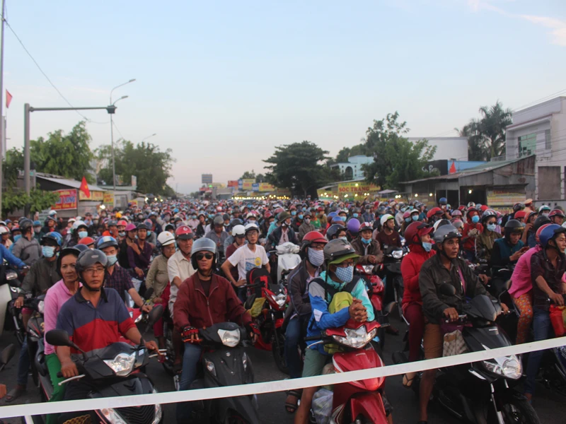 Từ 17 giờ đến khoảng 19 giờ tối dòng người vẫn còn nườm nượp đổ về TP.HCM sau kỳ nghĩ lễ, tuy nhiên áp lực giao thông càng lúc càng nghiêm trọng hơn, các tuyến quốc lộ kẹt xe kéo dài. Tại một số điểm nóng, người và phương tiện thất thủ đứng tại chỗ không di chuyển được trong thời gian dài.