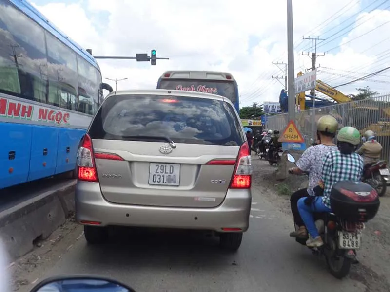 Trên xa lộ Hà Nội, đoạn từ cầu vượt Tân Vạn đến Thủ Đức thuộc địa phận thị xã Dĩ An, Bình Dương, làn đường dành cho xe hai bánh, ba bánh thường bị ô tô lấn chiếm, chạy thành hàng dài gây cản trở cho các phương tiện khác.