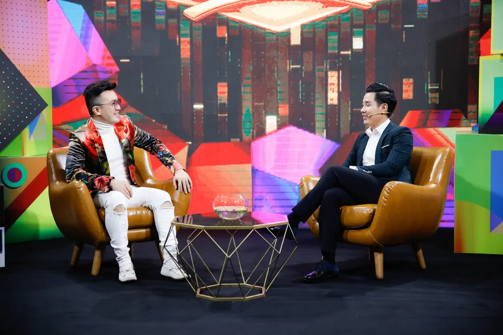 MC Nguyên Khang trao đổi cùng Dương Ngọc Thái.