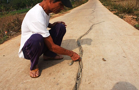 | Đường khác cũng hư Cùng chung tình trạng với con đường ở ấp Trung Hưng, con đường Kết Đoàn của ấp Trung Tín (cùng xã Xuân Trường) chiều dài đổ bê tông hơn nửa km, ngang rộng 2,5 m với vốn xây dựng 437 triệu đồng (do địa phương cùng người dân đóng góp), UBND xã Xuân Trường chủ đầu tư và nhà thầu thực hiện cũng là Công ty Châu Lộc Khánh. Theo người dân nơi đây con đường này cũng sử dụng chưa được hai tháng đã hư hỏng, nứt nhiều chỗ. Hiện nhà thầu cũng đã khắc phục bằng cách đổ xi măng vào vết nứt. |