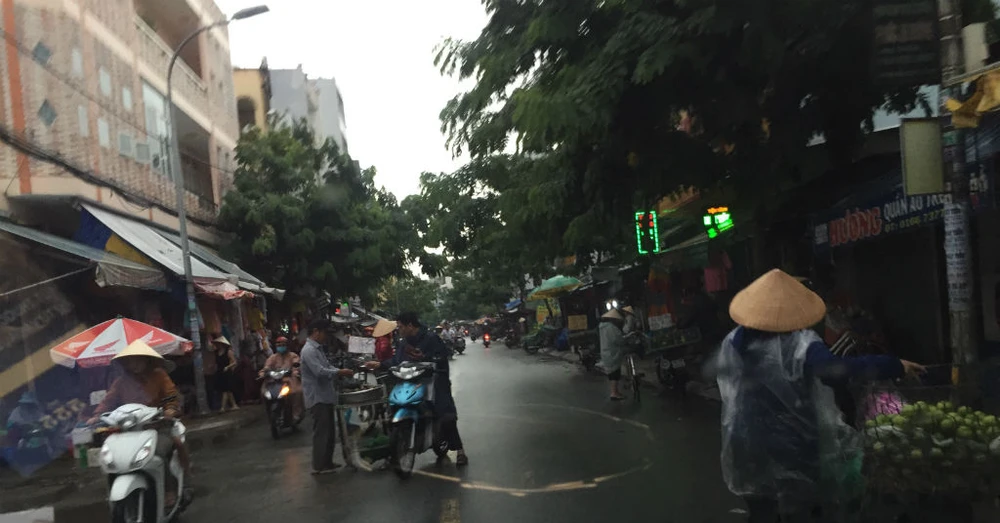 Trong khi đó, hơn 1 km của đường Phạm Văn Bạch thuộc quận Gò Vấp trở thành chợ tự phát. Tại đây, người dân "hồn nhiên" đứng giữa đường để thực hiện việc mua bán, đẩy xe chở hàng tới lui