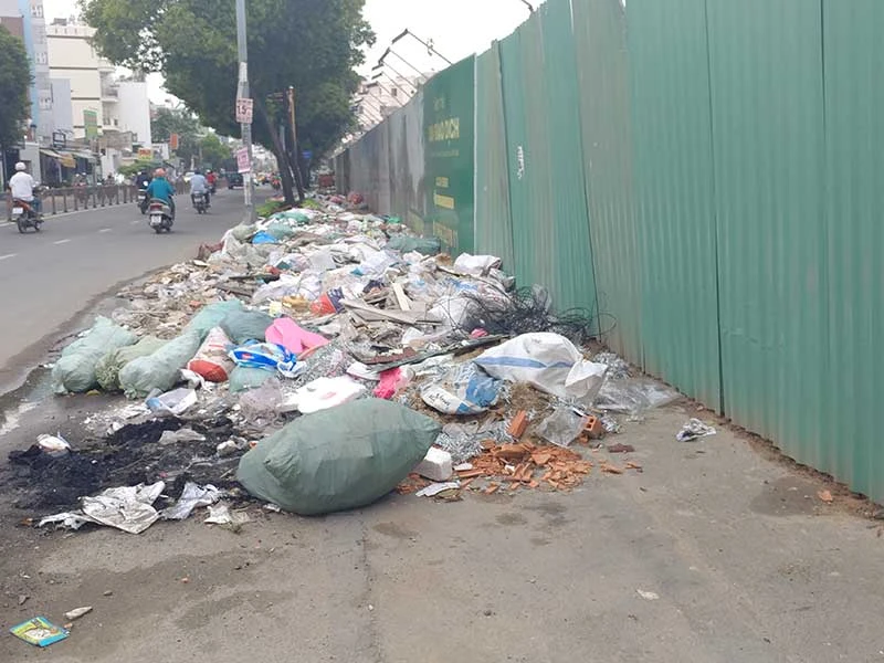 Hình ảnh bãi rác tự phát trên đường Phan Văn Trị, phường 10, quận Gò Vấp, TP.HCM. Ảnh: NGUYỄN CHÂU