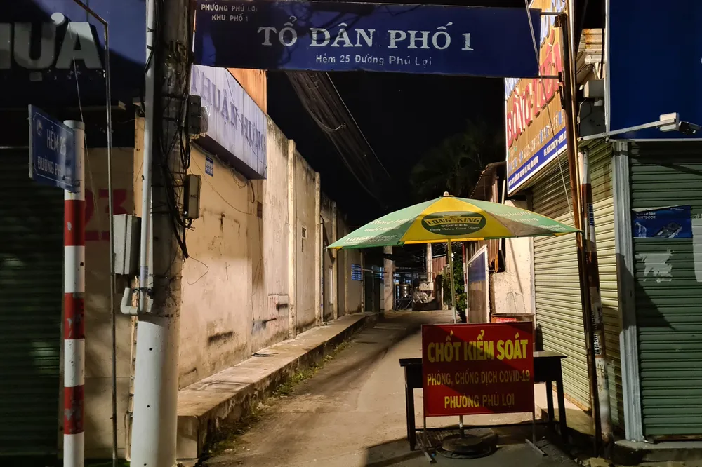 Các con hẻm bị dăng dây, chốt chặn cũng không một bóng người, ai ở nhà người đấy.