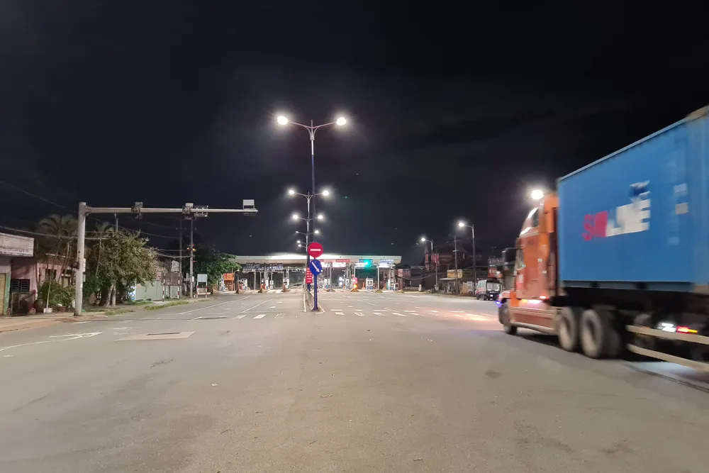 Đại lộ Bình Dương giao với đường Huỳnh Văn Cù là tuyến đường huyết mạch nối TP HCM với Bình Dương, hàng ngày đông đúc xe container, xe tải qua lại nay chỉ thưa thớt một vài xe container lưu thông.