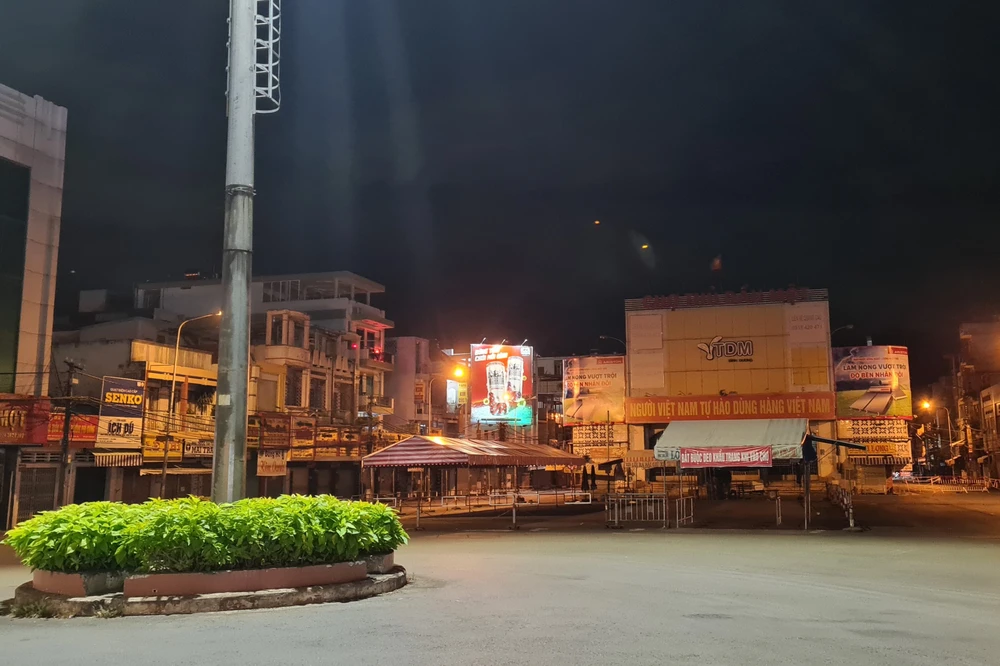 Ngã sáu, trung tâm TP Thủ Dầu Một, nơi hàng đêm có rất đông người dân tập trung vui chơi, giờ chỉ có lực lượng chức năng làm nhiệm vụ.