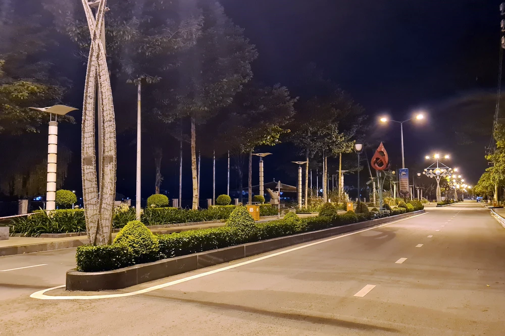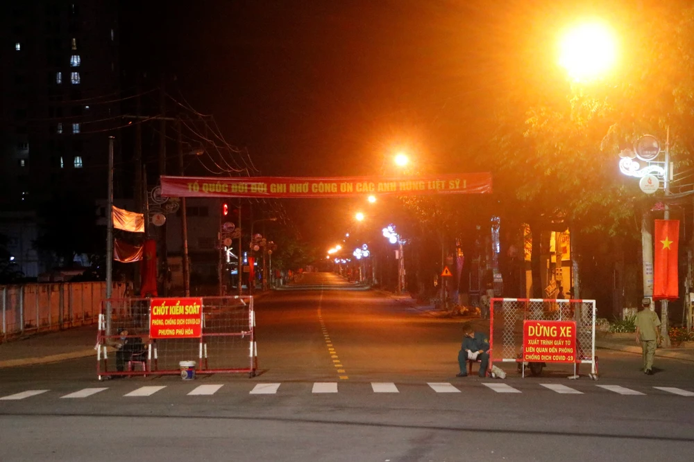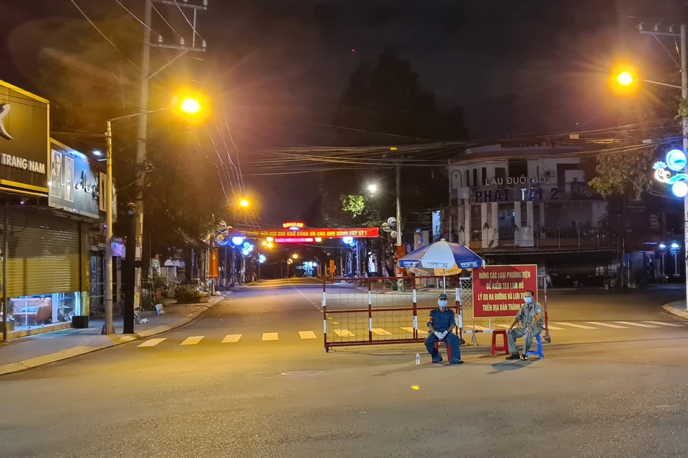 20 giờ, hai đầu tuyến đường 30-4 được kiểm soát nghiêm ngặt, đường phố không một bóng người.